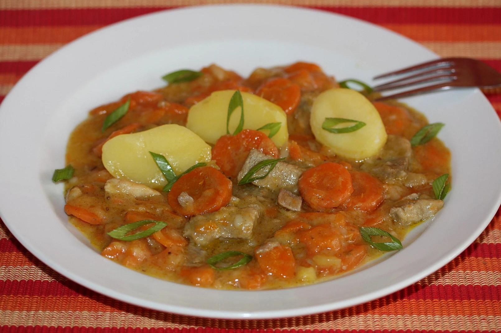 - Až jíška zezlátne, přidejte ji k masu a mrkvi a za stálého míchání ještě chvíli povařte.