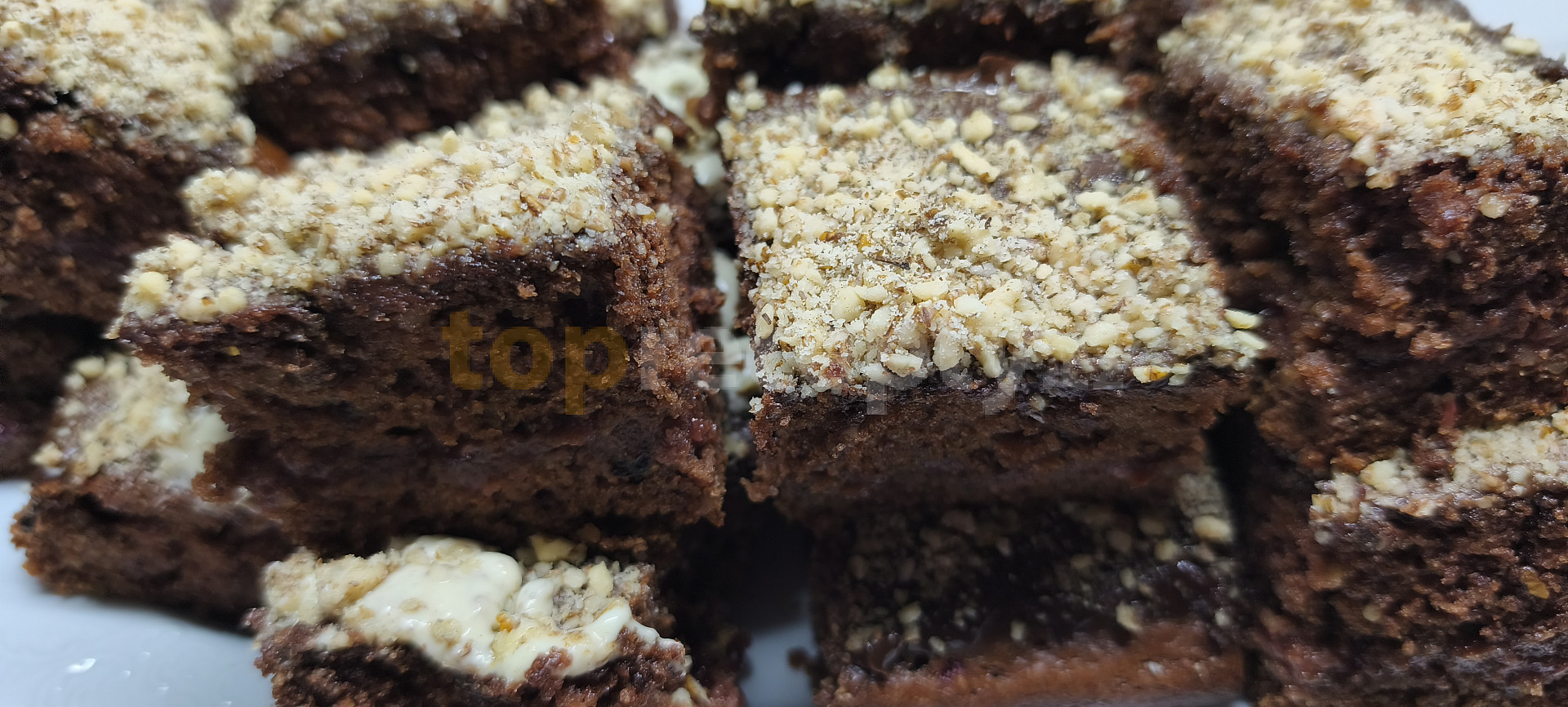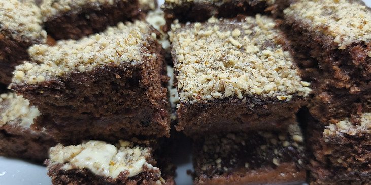 mouka hladká, mouka polohrubá, mléko, olej, cukr krupice, pudink čokoládový, vejce, prášek do perníku, kypřící prášek do pečiva, cukr vanilkový, kakao, povidla švestková, skořice, ořechy vlašské, poleva čokoládová, kokos, ořechy mleté
