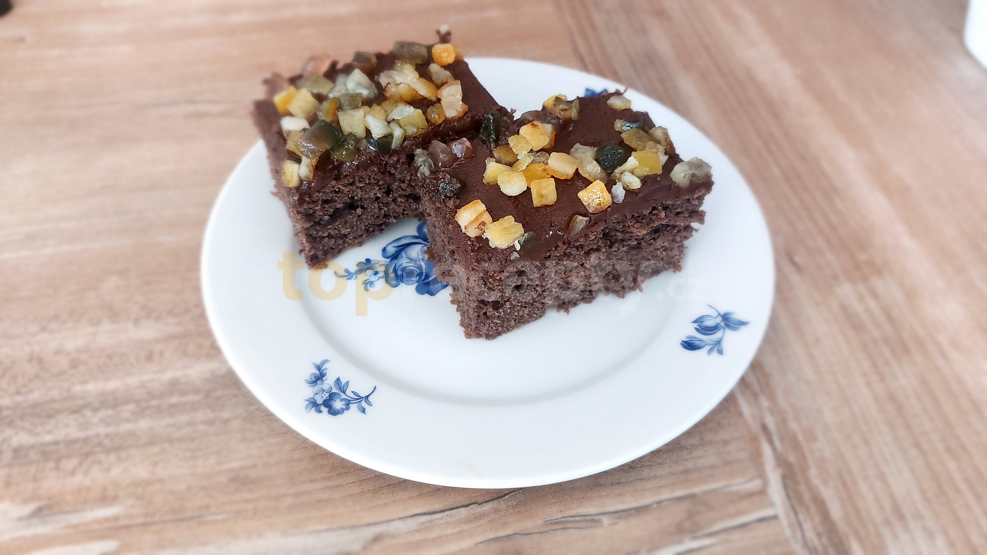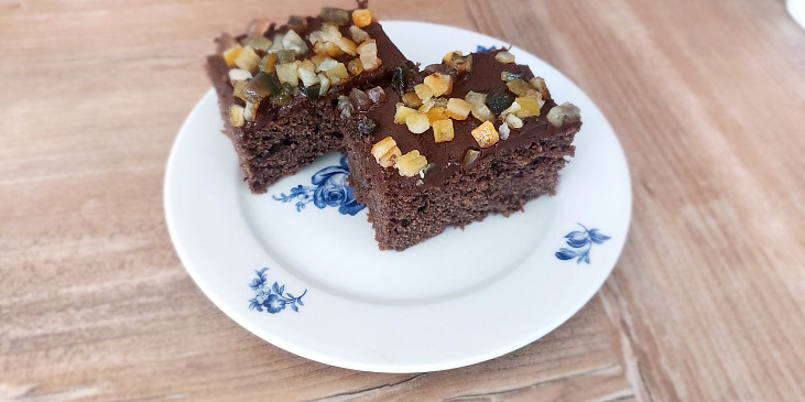 mouka hladká, mouka polohrubá, mléko, olej, cukr krupice, pudink čokoládový, vejce, prášek do perníku, kypřící prášek do pečiva, cukr vanilkový, kakao, povidla švestková, skořice, ořechy vlašské, poleva čokoládová, kokos, ořechy mleté