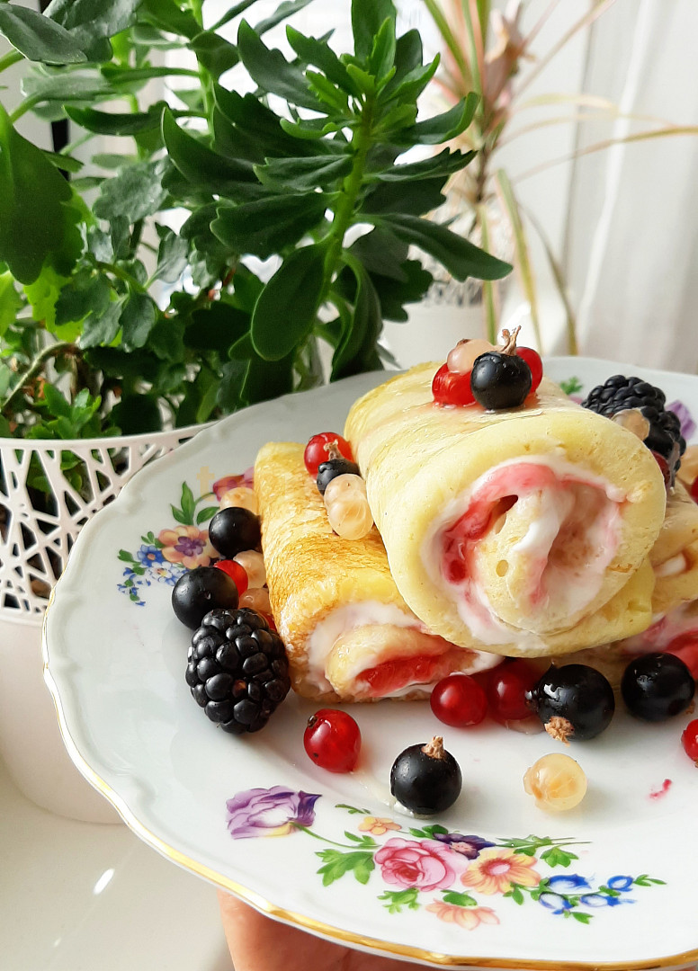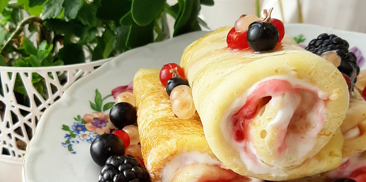 vejce, mouka hladká, mléko, máslo, sůl, máslo, marmeláda, nutella, tvaroh, šlehačka, ovoce