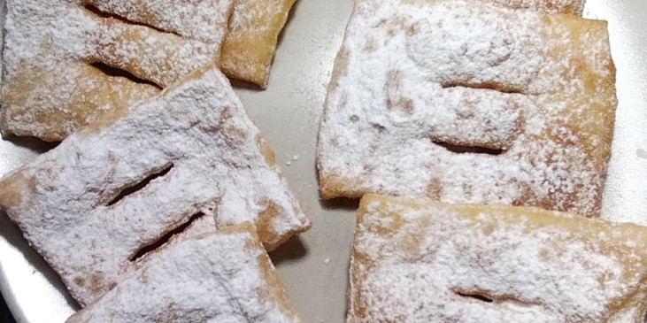 mouka hladká, máslo, cukr moučkový, žloutek, smetana ke šlehání, víno bílé, rum bílý, sůl, olej, cukr moučkový, skořice mletá