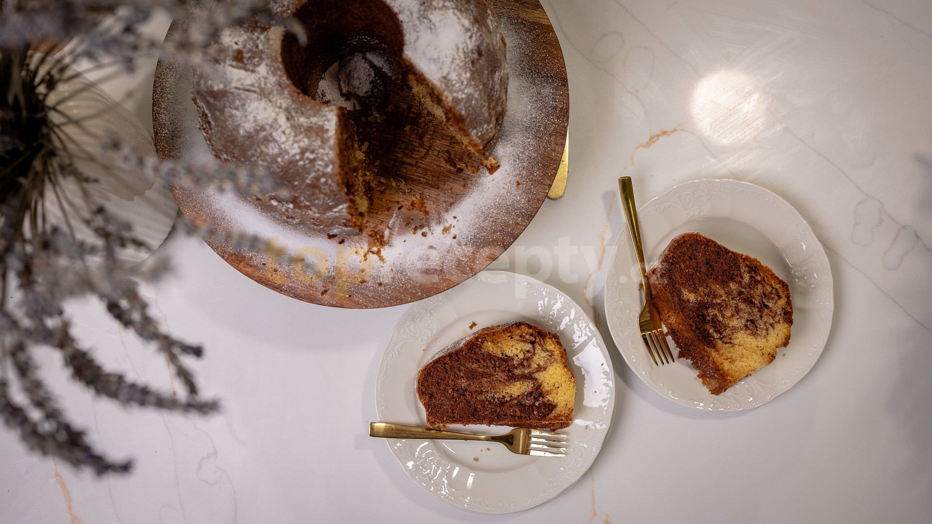 vejce, cukr krupice, cukr vanilkový, olej, likér vaječný, mouka polohrubá, kypřící prášek do pečiva, kakao, tuk, mouka hrubá, cukr moučkový