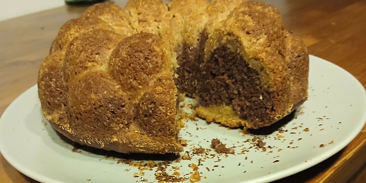 jablko, šťáva citronová, skořice, mouka polohrubá, mléko, olej, cukr krupice, vejce, cukr vanilkový, kypřící prášek, kakao, tuk, mouka hrubá