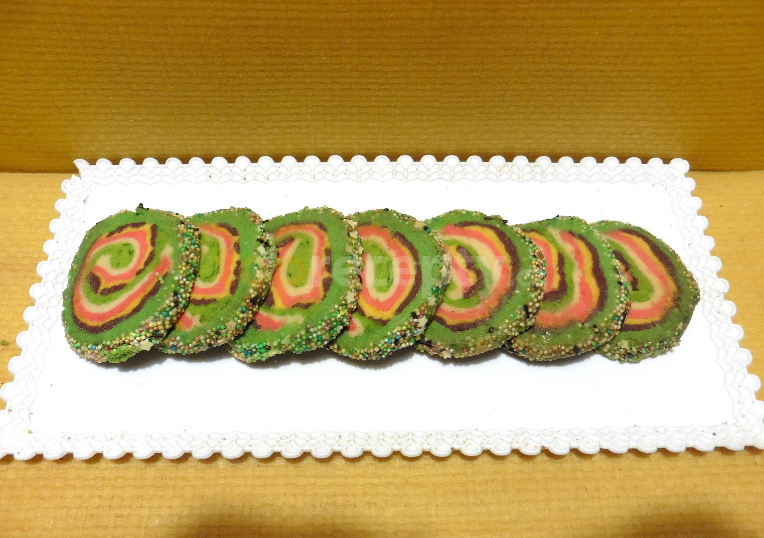 mouka hladká, máslo, cukr moučkový, žloutek, kypřící prášek do pečiva, skořice mletá, cukr vanilkový, sůl, bílek, potravinářské barvivo gelové, zdobení cukrářské (pecičky)