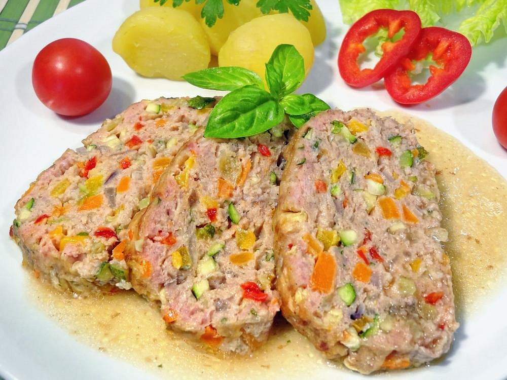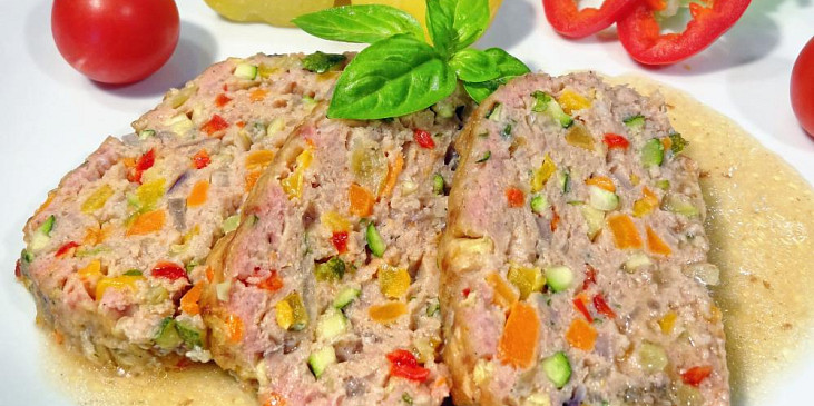 maso hovězí, maso vepřové, maso telecí, cibule červená, cuketa, mrkev, paprika čerstvá červená, paprika čerstvá žlutá, vejce, žemle, mléko, strouhanka, mouka hladká, petrželka, sůl, pepř mletý, paprika sušená sladká, majoránka