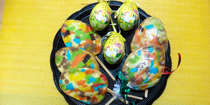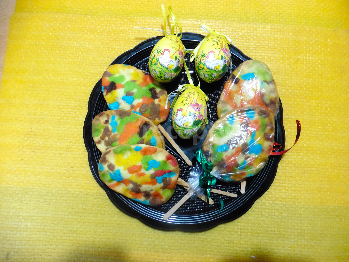 mouka hladká, máslo, cukr moučkový, žloutek, cukr vanilkový, kůra citronová, skořice mletá, potravinářské barvivo gelové, pomazánka, čokoláda,