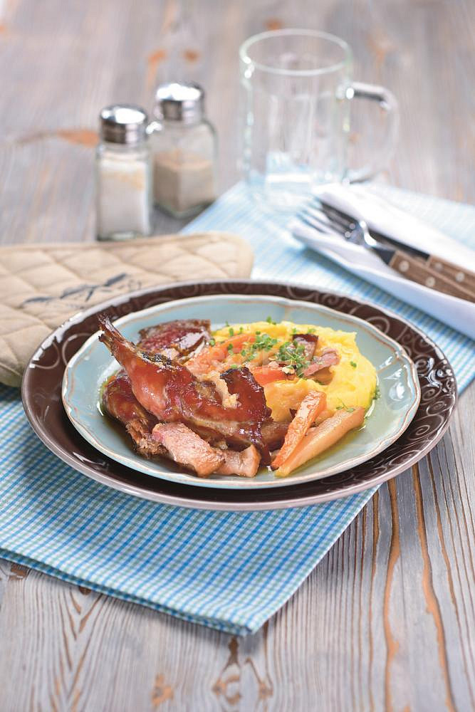 bažant, cibule, česnek, slanina anglická, sůl, olej olivový, mrkev, petržel, koření nové koření, bobkový list, pepř černý