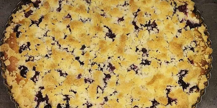 mouka polohrubá, máslo, cukr krupice, cukr vanilkový, skořice, žloutek, kypřící prášek do pečiva, kůra citronová, mléko, borůvky, tuk