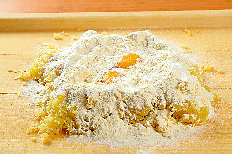 brambory, mouka polohrubá, vejce, máslo, strouhanka, maso uzené, cibule, sůl, zelí kysané, cibule sušená smažená