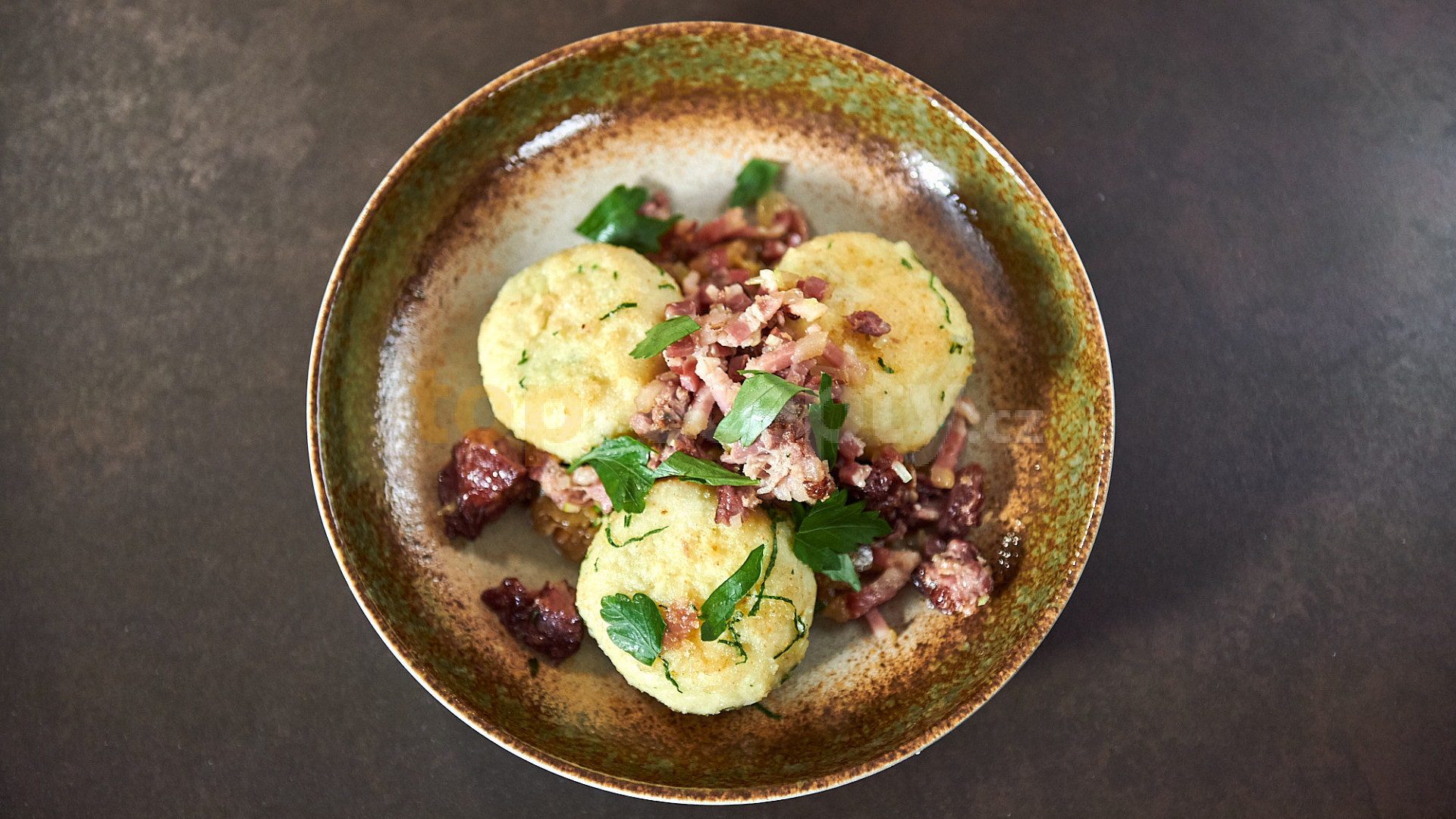 brambory typ c, mouka hrubá, žebra uzená, slanina anglická, cibule, zelí kysané, cukr, sádlo, strouhanka, petrželka hladkolistá, brambory, vývar uzený, vejce, pepř mletý, sůl