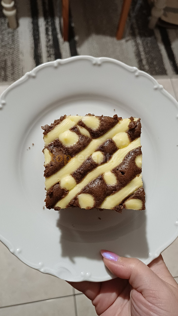 mouka polohrubá, cukr moučkový, mléko, olej, vejce, cukr vanilkový, prášek do pečiva, kakao, tvaroh ve vaničce, pudink vanilkový, cukr, mléko, máslo, mouka hrubá