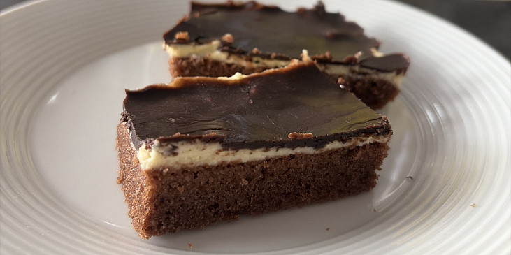 mouka polohrubá, mléko, olej, kakao, prášek do pečiva, cukr, vejce, mouka hrubá, tvaroh, máslo, cukr moučkový, máslo, čokoláda