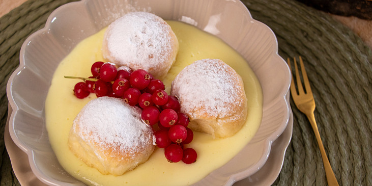 mouka polohrubá, cukr krupice, mléko, máslo, droždí čerstvé, žloutek, sůl, máslo, pudink vanilkový, mléko, cukr krupice, rum, cukr moučkový, ovoce