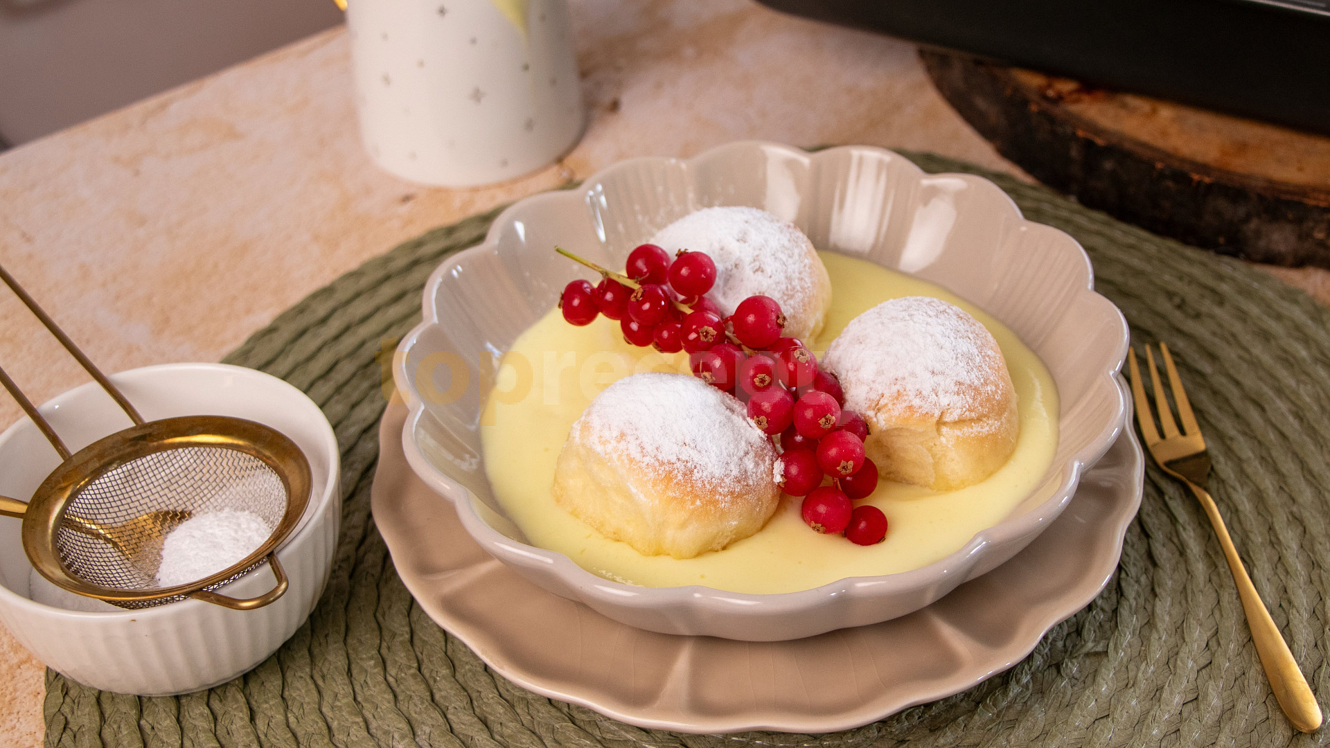 mouka polohrubá, cukr krupice, mléko, máslo, droždí čerstvé, žloutek, sůl, máslo, pudink vanilkový, mléko, cukr krupice, rum, cukr moučkový, ovoce