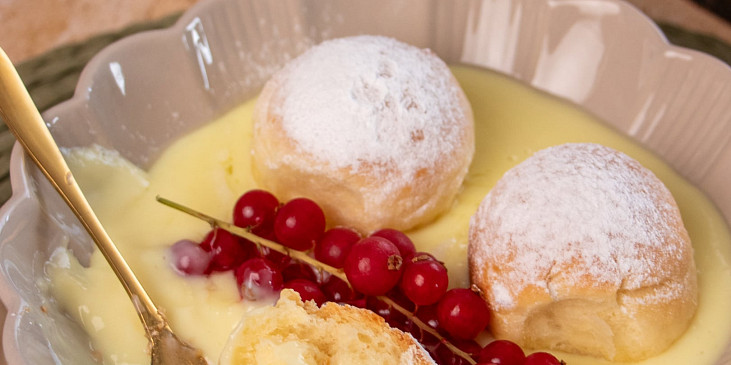 mouka polohrubá, cukr krupice, mléko, máslo, droždí čerstvé, žloutek, sůl, máslo, pudink vanilkový, mléko, cukr krupice, rum, cukr moučkový, ovoce