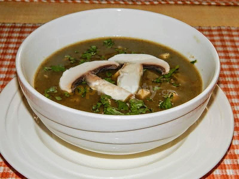 vývar masový, sůl, pepř mletý, cibule, máslo, olej, celer, celer řapíkatý, žampióny, smetana 33%, smetana kysaná, nať petrželová