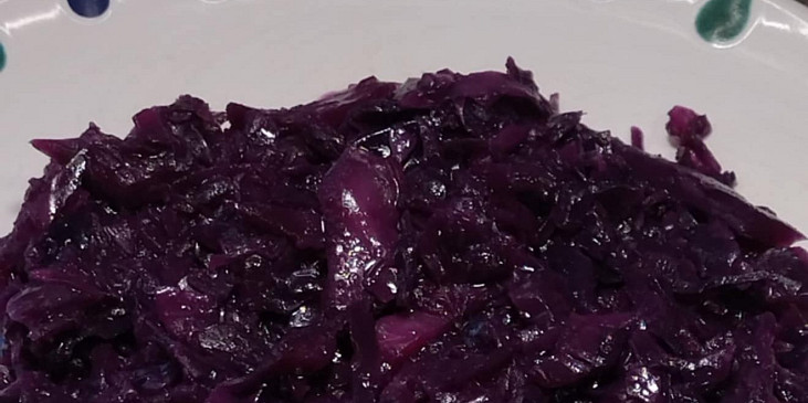 zelí kysané červené, cibule, cukr krupice, víno červené, olej, ocet