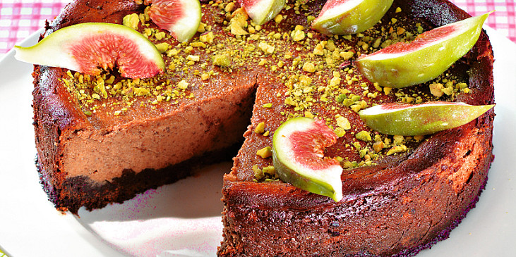 mouka hladká, cukr moučkový, kypřící prášek, kakao, máslo, cukr vanilkový, žloutek, vejce, tvaroh měkký, cukr krupice, pudink vanilkový, čokoláda na vaření, ořechy pistácie, fíky, tuk, mouka hrubá