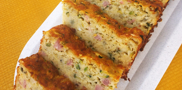 cuketa, sýr tvrdý, kapie, maso uzené, cibulka jarní, smetana zakysaná, vejce, koření na zeleninu, sůl, pepř mletý, česnek, mouka hladká, kypřící prášek do pečiva, slanina anglická, sádlo