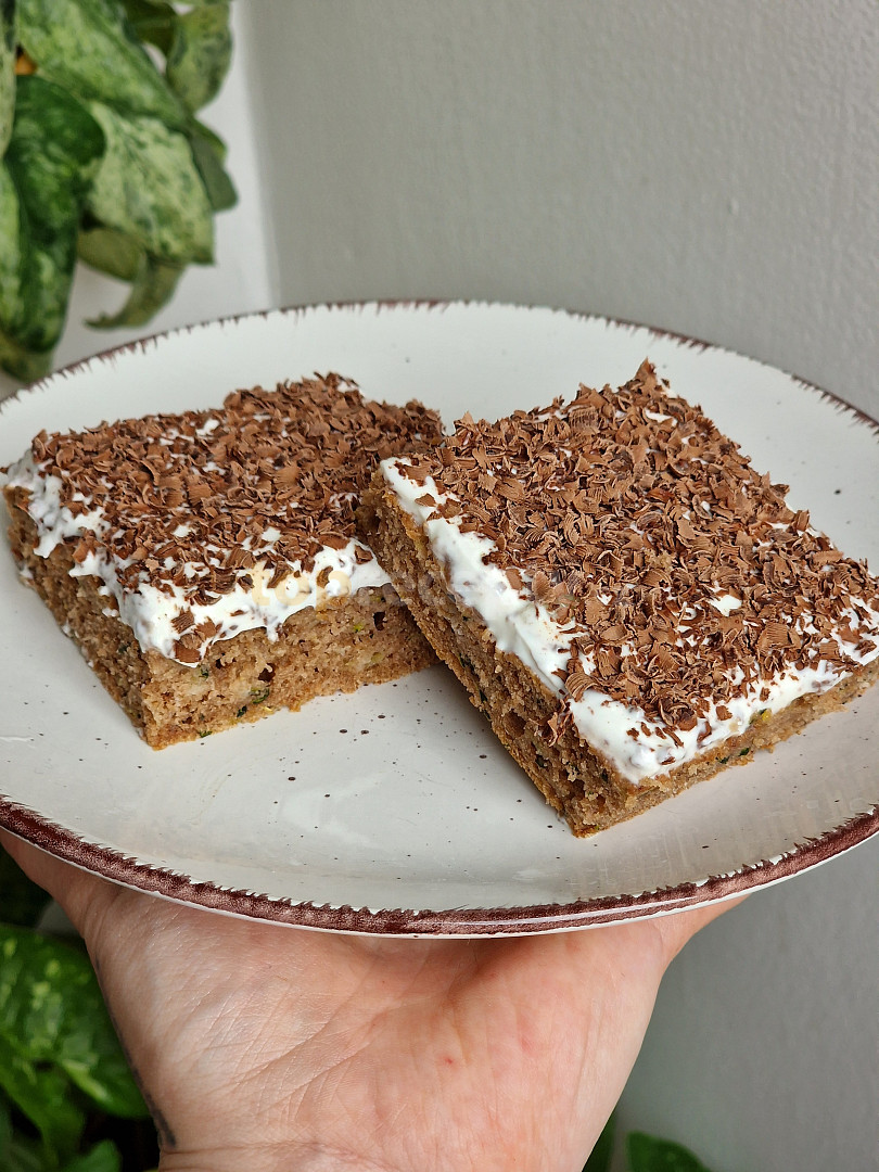 vejce, cukr krupice, cuketa, mouka polohrubá, olej, kakao, kypřící prášek do pečiva, kompot, smetana zakysaná, čokoláda hořká