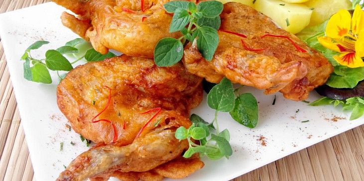 křídla kuřecí, vejce, mléko, mouka hladká, kečup ostrý, omáčka sojová, slanina, bazalka čerstvá, chilli paprika čerstvá, kypřící prášek do pečiva, sůl, pepř mletý, chilli, paprika sušená sladká, olej