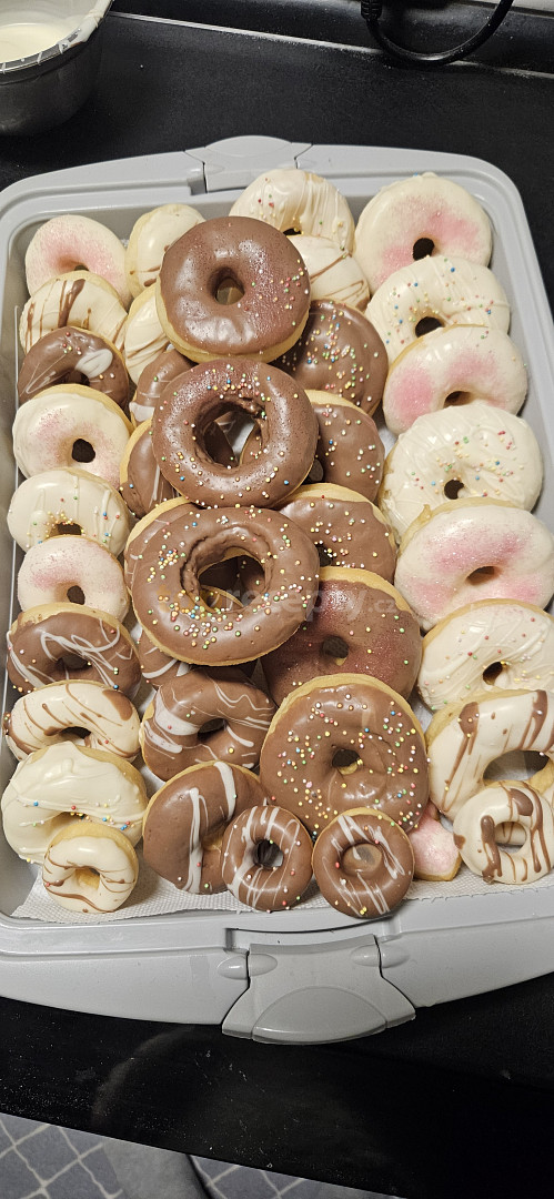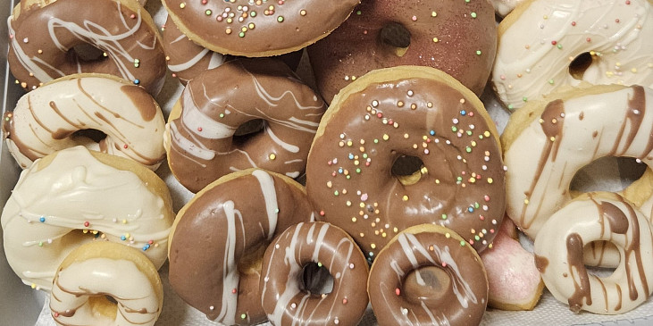 mouka polohrubá, mléko, žloutek, cukr krupice, tuk, droždí, rum, sůl, olej, poleva čokoládová, poleva čokoládová bílá, zdobení kuličky, kokos