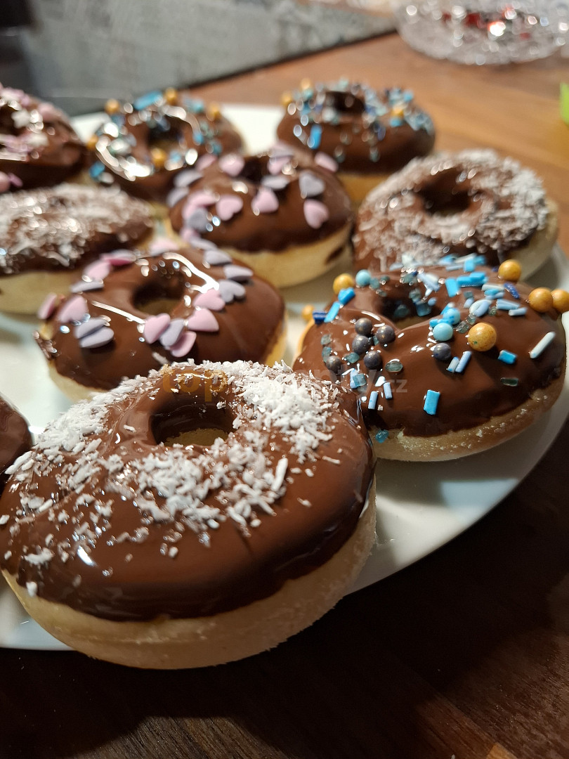 mouka hladká, mouka polohrubá, sůl, cukr moučkový, cukr vanilkový, mléko, rum, vejce, máslo, droždí čerstvé, olej, mouka polohrubá, poleva čokoládová, poleva, zdobení cukrářské, kokos, oříšky
