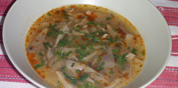 hlíva ústřičná, cibule, česnek, vývar zeleninový, olej, máslo, mouka hladká, paprika sušená sladká, sůl, pepř mletý, majoránka