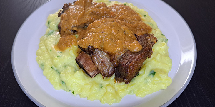 Fotografie k receptu Dušená hovězí žebra se zeleninovou omáčkou