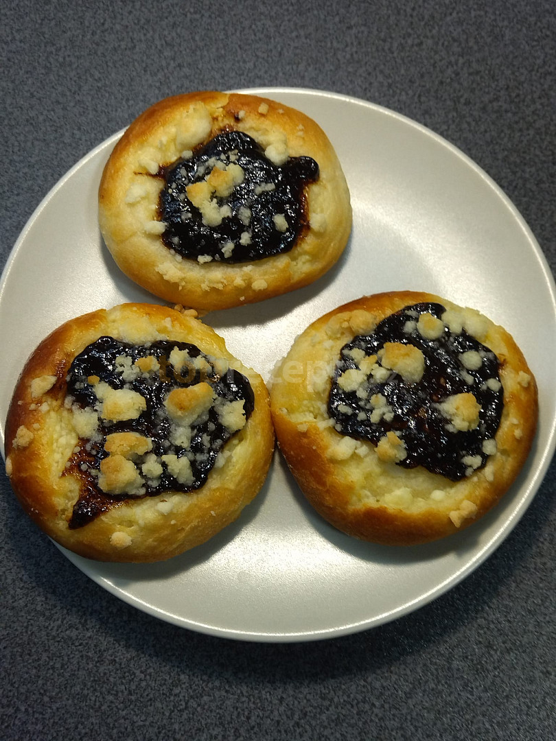 mouka polohrubá, mouka hladká, žloutek, sádlo, majonéza, kvásek, droždí, mléko, rum, citron, sůl, povidla švestková, cukr, rum, skořice, tvaroh, vejce, cukr, kůra citronová, rozinky, máslo, mouka polohrubá, cukr moučkový, máslo