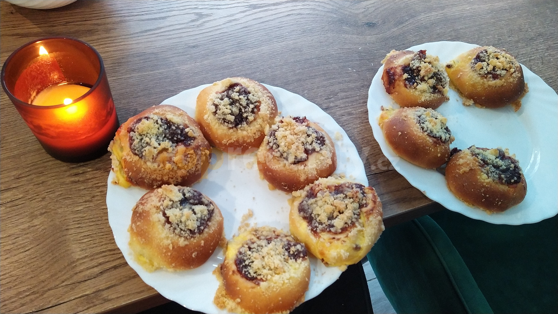 mouka hladká, cukr krupice, mléko, máslo, vejce, sůl, droždí, kůra citronová, tvaroh, cukr moučkový, cukr vanilkový, rozinky, kůra citronová, žloutek, mouka hladká, cukr krupice, máslo, rum, sůl, máslo, rum, povidla švestková, skořice mletá, koření hřebíček