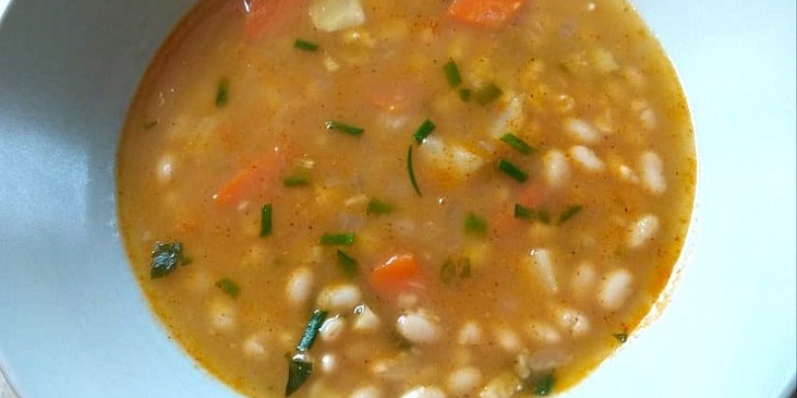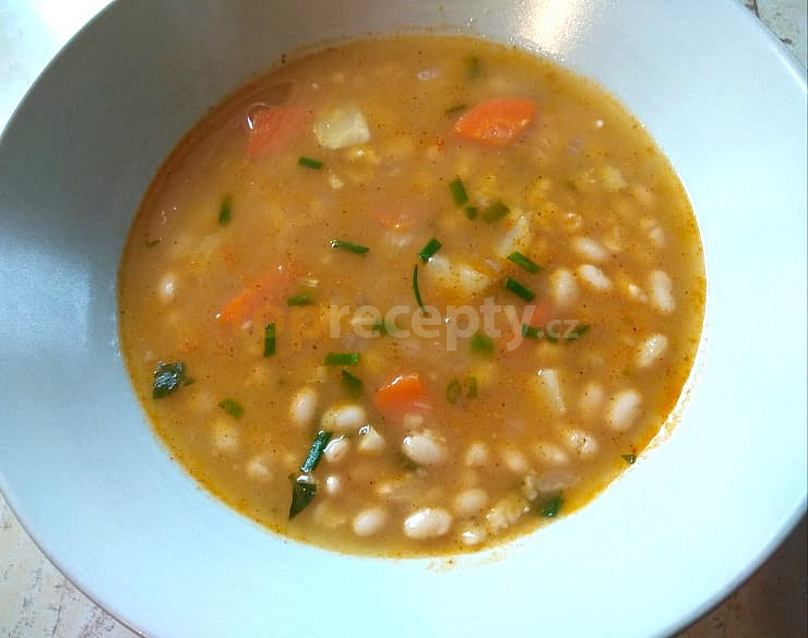 fazole bílé, brambory, zelenina kořenová, cibule, máslo, mouka hladká, sůl, koření polévkové, petrželka zelená
