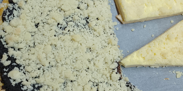 mouka hladká, žloutek, mléko, droždí, cukr krystal, máslo, sůl, žloutek, rum, tvaroh, cukr krupice, cukr vanilkový, žloutek, kůra pomerančová, rum, mák mletý, mléko, cukr krupice, skořice mletá, marmeláda, drobenka, mouka polohrubá, cukr krupice, máslo