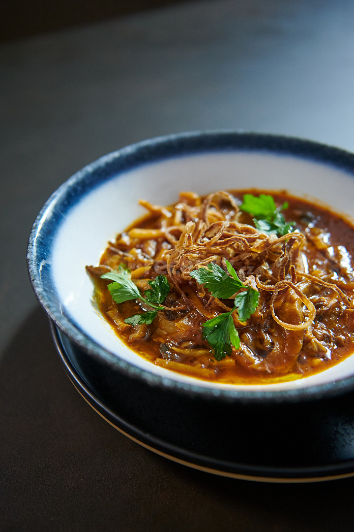 hlíva ústřičná, vývar zeleninový, brambory, cibule, česnek, houby sušené, celer, protlak rajčatový, olej slunečnicový, máslo, kmín celý, majoránka sušená, paprika sušená sladká, mouka hladká, tymián čerstvý, petržel, cibule šalotka, olej slunečnicový, mouka hladká, preclík