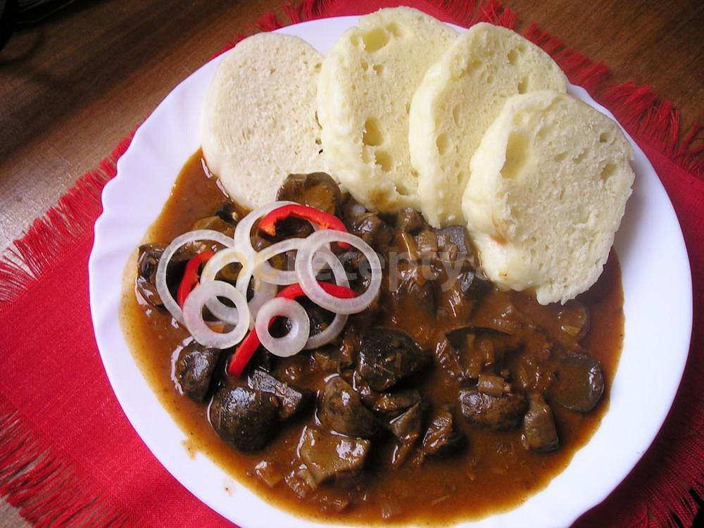 houby čerstvé, cibule, olej, paprika sušená sladká, česnek, mouka hladká, vývar masový, sůl, kmín celý, pepř mletý, majoránka