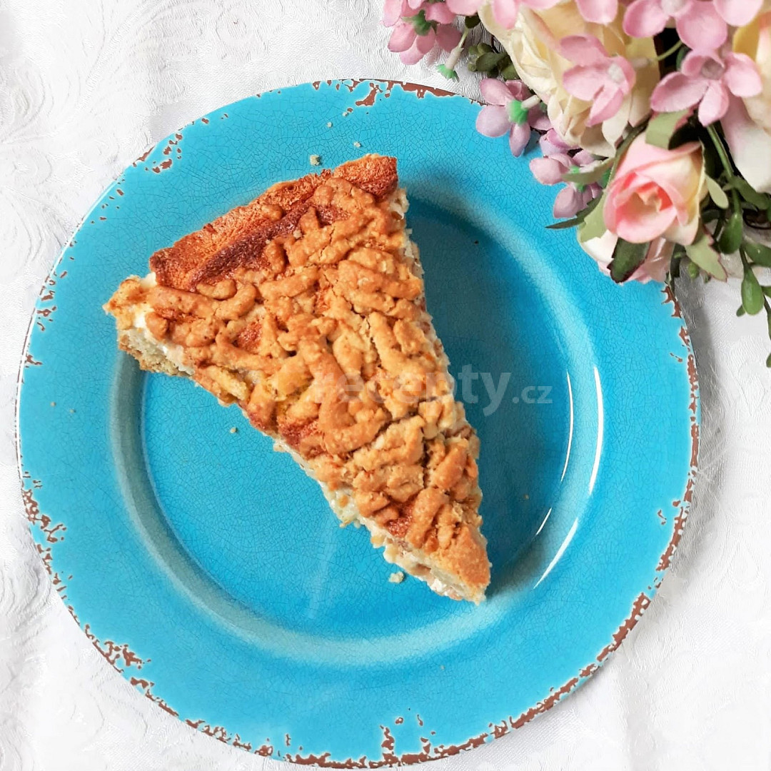 mouka polohrubá, cukr krupice, máslo, vejce, kypřící prášek, jablko, šťáva citronová, kokos strouhaný, cukr skořice, cukr krupice, tuk, mouka hrubá