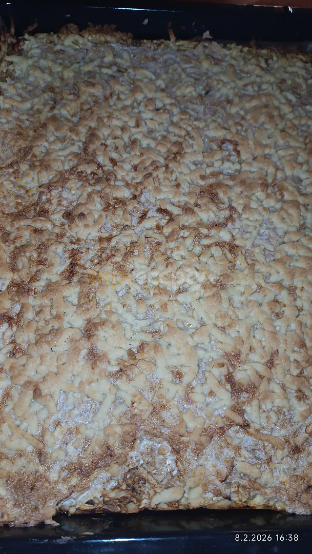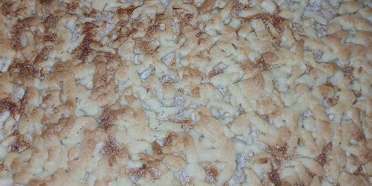 mouka hladká, tuk hera, žloutek, cukr moučkový, kypřící prášek do pečiva, jablko, cukr vanilkový, cukr krupice, skořice mletá, bílek