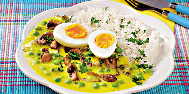 Suroviny receptu Hráškové karí s vejcem a žampiony