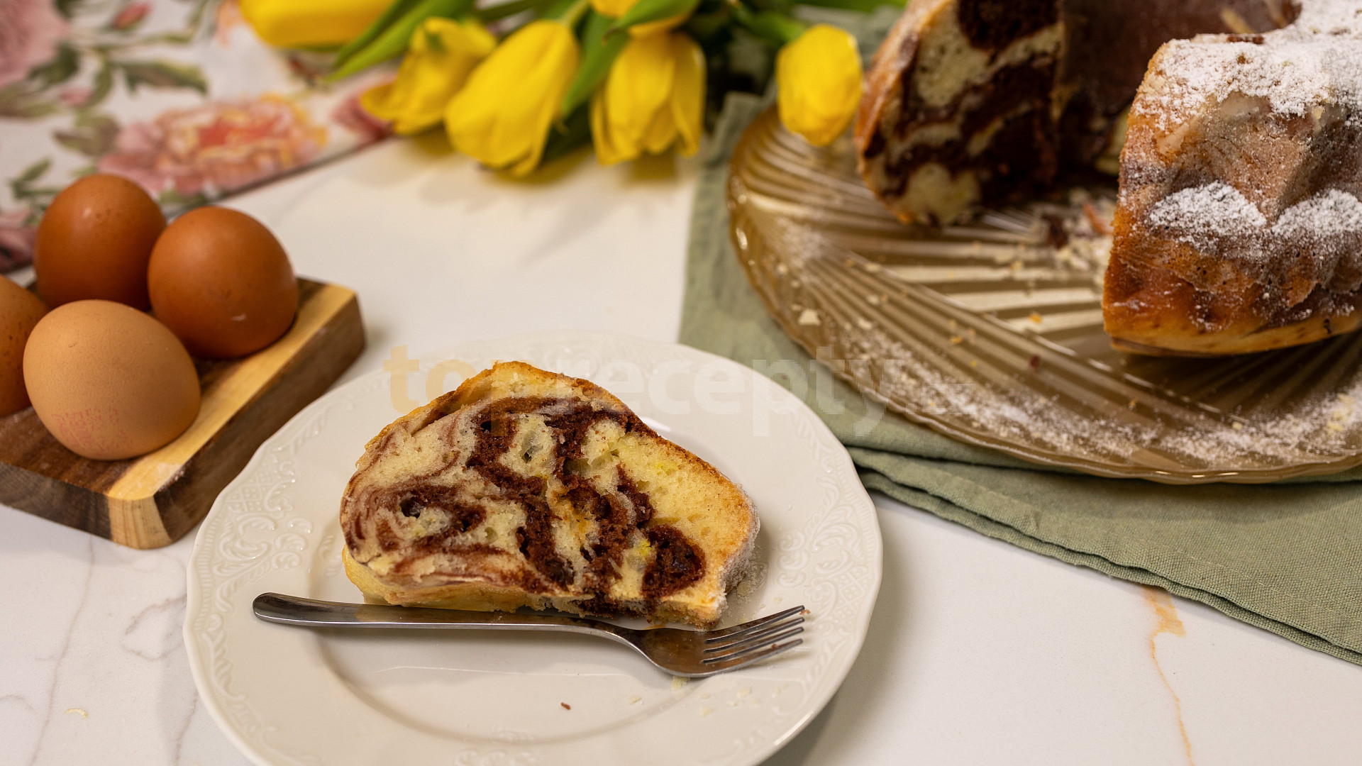 tvaroh ve vaničce, vejce, olej, cukr moučkový, mouka polohrubá, kypřící prášek do pečiva, rum, mléko, kůra citronová, rozinky, kakao, tuk, mouka hrubá