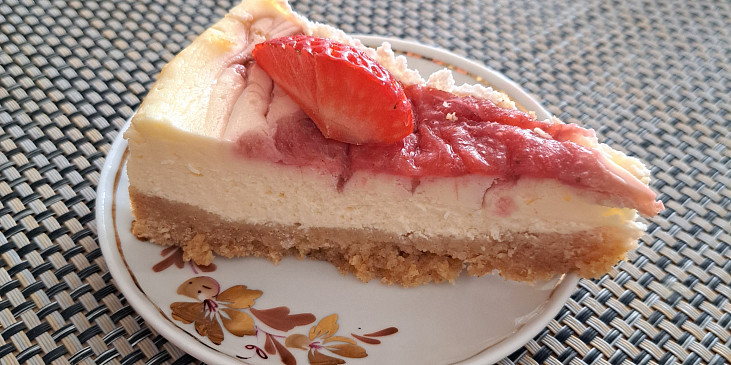 jahody, cukr krupice, šťáva citronová, voda, škrob kukuřičný, sušenky, máslo, sýr měkký tavený, cukr krupice, vejce, smetana zakysaná, extrakt vanilkový, jahody