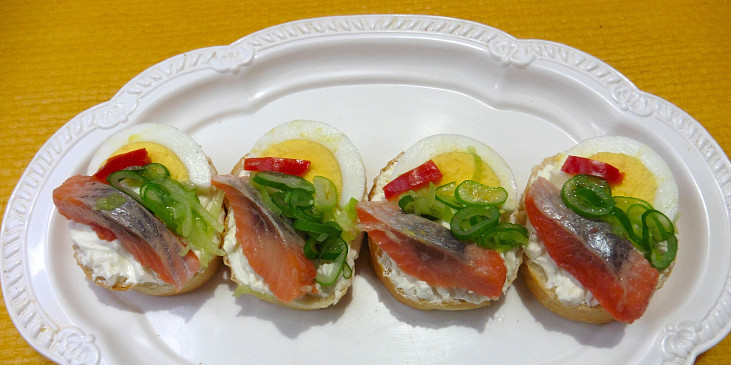 Fotografie k receptu Jednohubky s matjesem a vajíčkem