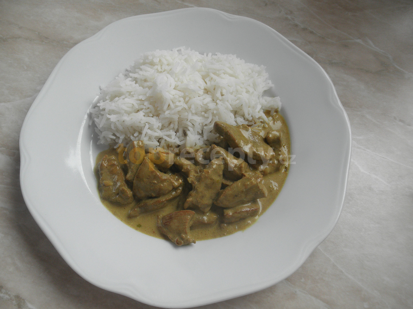 prsa kachní, olej olivový, koření kari, cibule, omáčka sojová, med, sůl, smetana ke šlehání, tráva citronová