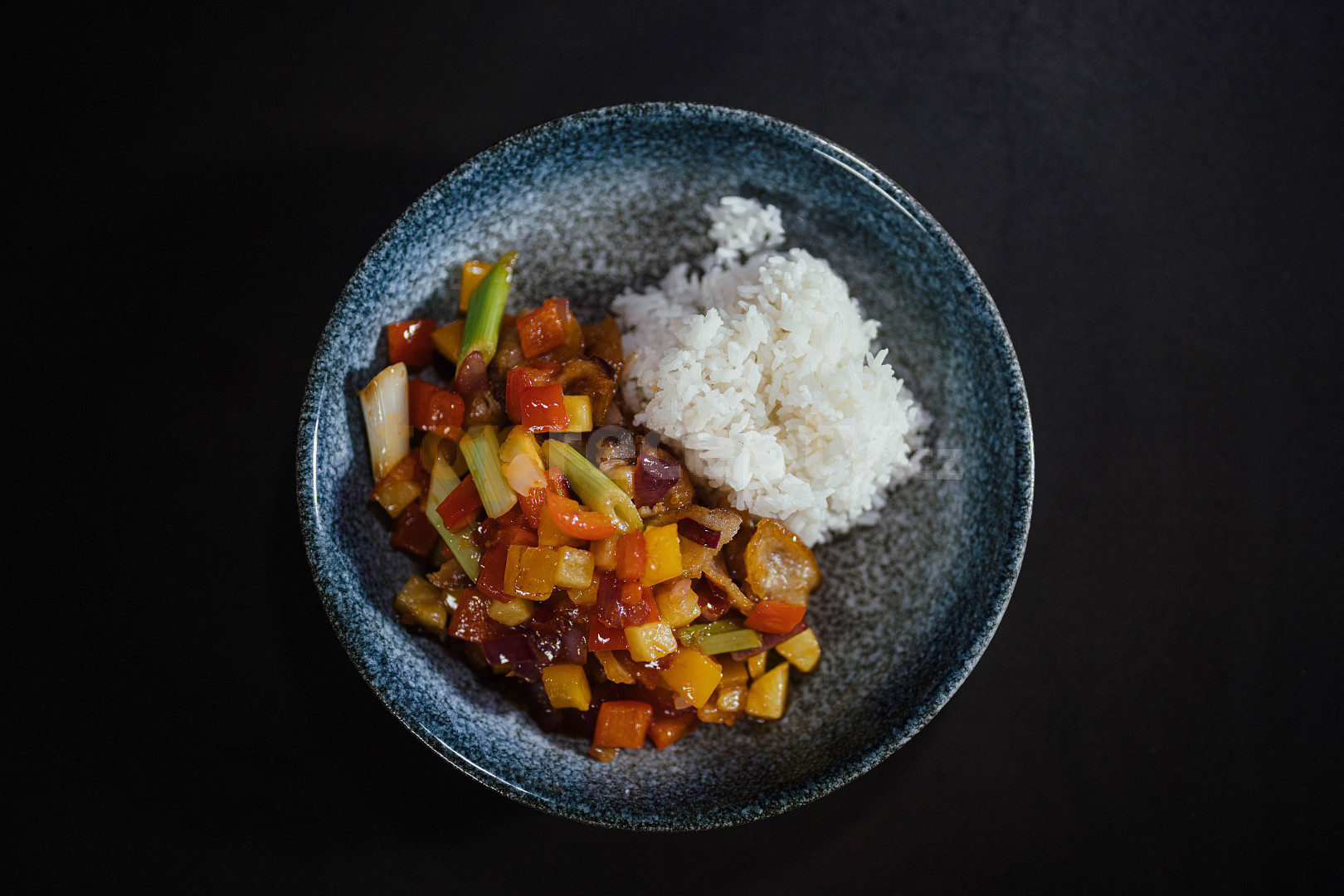 filet z kapra, škrob kukuřičný, olej slunečnicový, cibule červená, paprika čerstvá červená, paprika čerstvá oranžová, rajče, ananas, cibulka jarní, omáčka rajčatová, omáčka švestková, omáčka chilli sladká, cukr hnědý, sůl