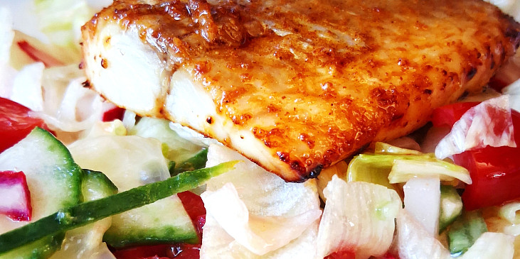 filet z kapra, máslo, paprika sušená sladká, česnek sušený, sůl, kmín mletý, šťáva citronová