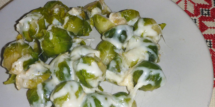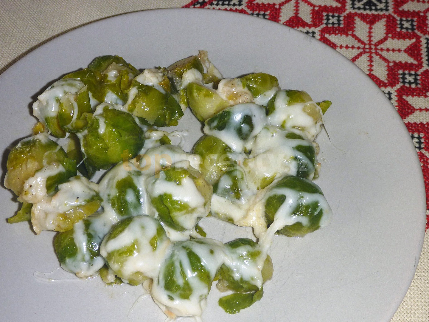kapusta růžičková, olej, česnek, pepř mletý, sýr nastrouhaný