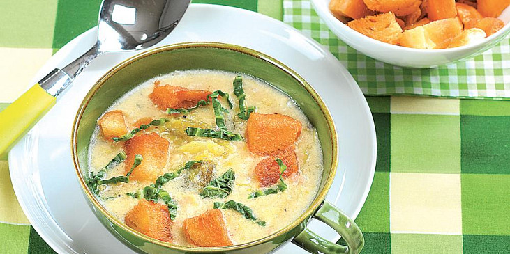 kapusta, vývar kuřecí, smetana na vaření, cibule, maso uzené, česnek, olej, mouka hladká, kmín drcený, pepř mletý, sůl, žemle, máslo
