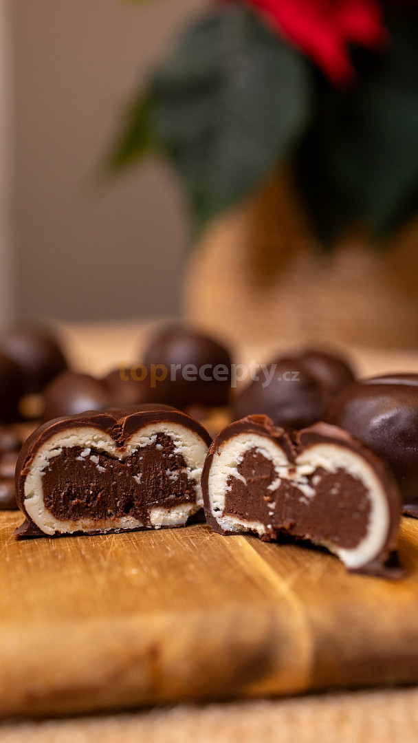 cukr moučkový, mléko sušené, olej, med, voda, mandlové aroma, cukr moučkový, káva mletá, kakao, máslo, solamyl, čokoláda na vaření, tuk 100%