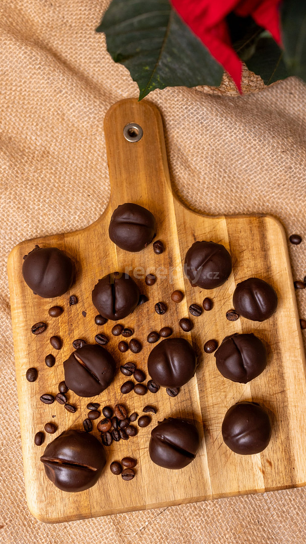 cukr moučkový, mléko sušené, olej, med, voda, mandlové aroma, cukr moučkový, káva mletá, kakao, máslo, solamyl, čokoláda na vaření, tuk 100%
