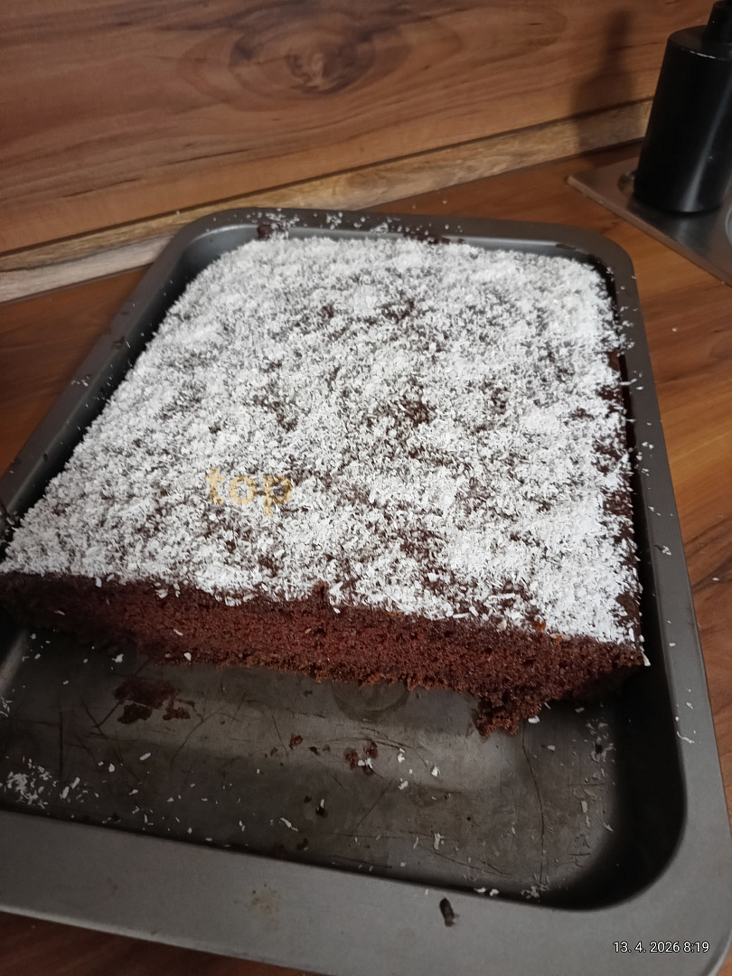 mouka polohrubá, cukr krupice, cukr vanilkový, kakao, soda jedlá, kefír, olej, smetana ke šlehání, čokoláda hořká, mandle mleté, máslo, mouka polohrubá