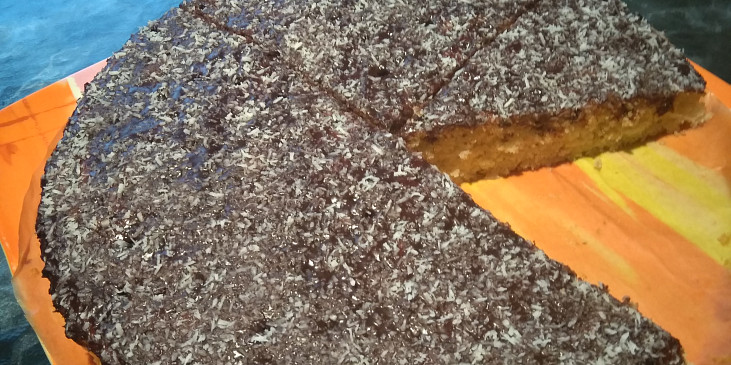 kefír, vejce, olej, cukr vanilkový, cukr krupice, mouka polohrubá, prášek do pečiva, kokos, máslo, cukr moučkový, kakao, voda, kokos